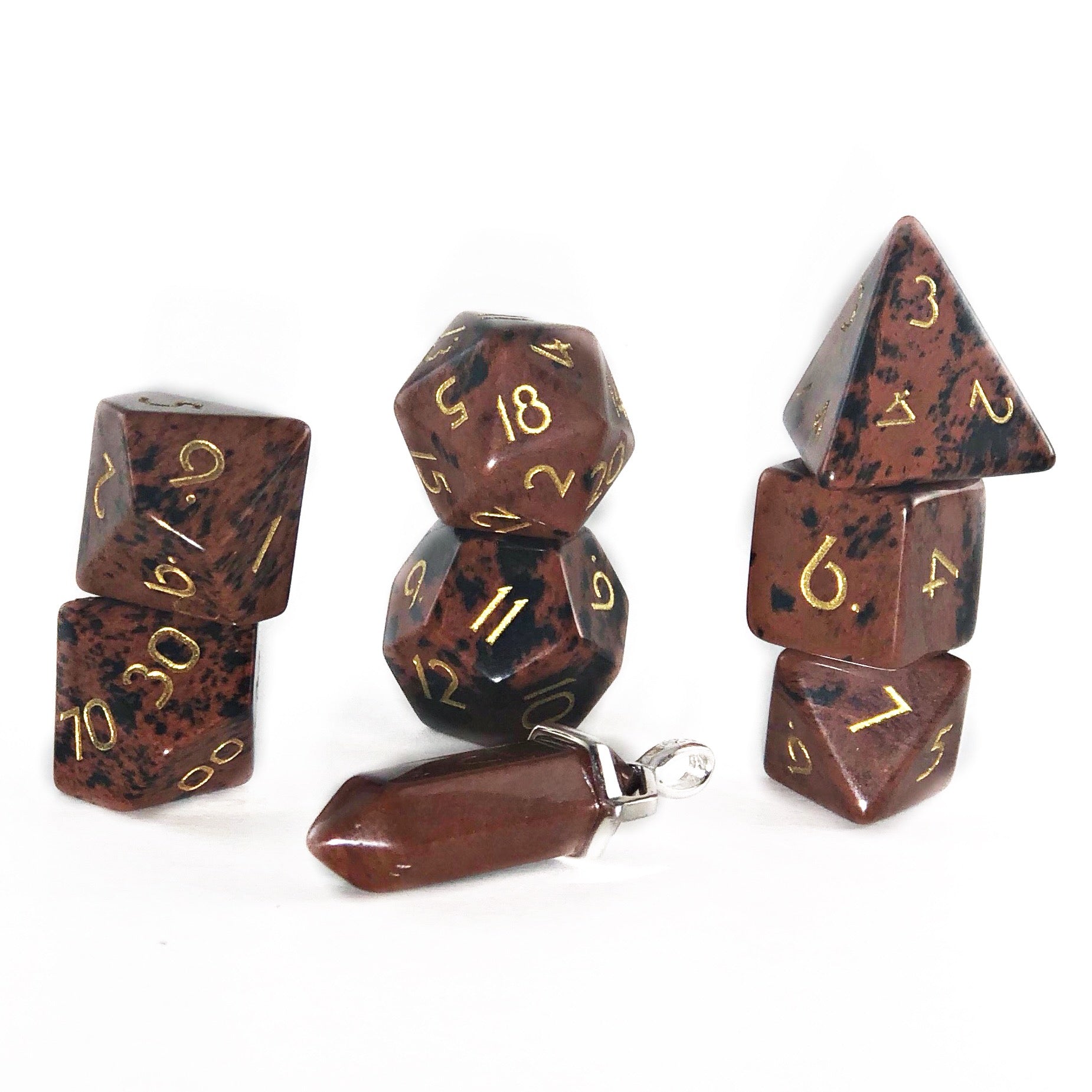Natural Stone Disclaimer: Please note when ordering a set of our Semi-Precious Dice, they are created from natural materials, and there will be differences between every die. Our Semi-Precious Dice are hand-crafted, so there may be minor variations such as slight size differences, asymmetrical faces, or off-centre numbering. As such, each die is unique and may not be perfectly symmetrical; their roll is as balanced as one would expect from acrylic dice.