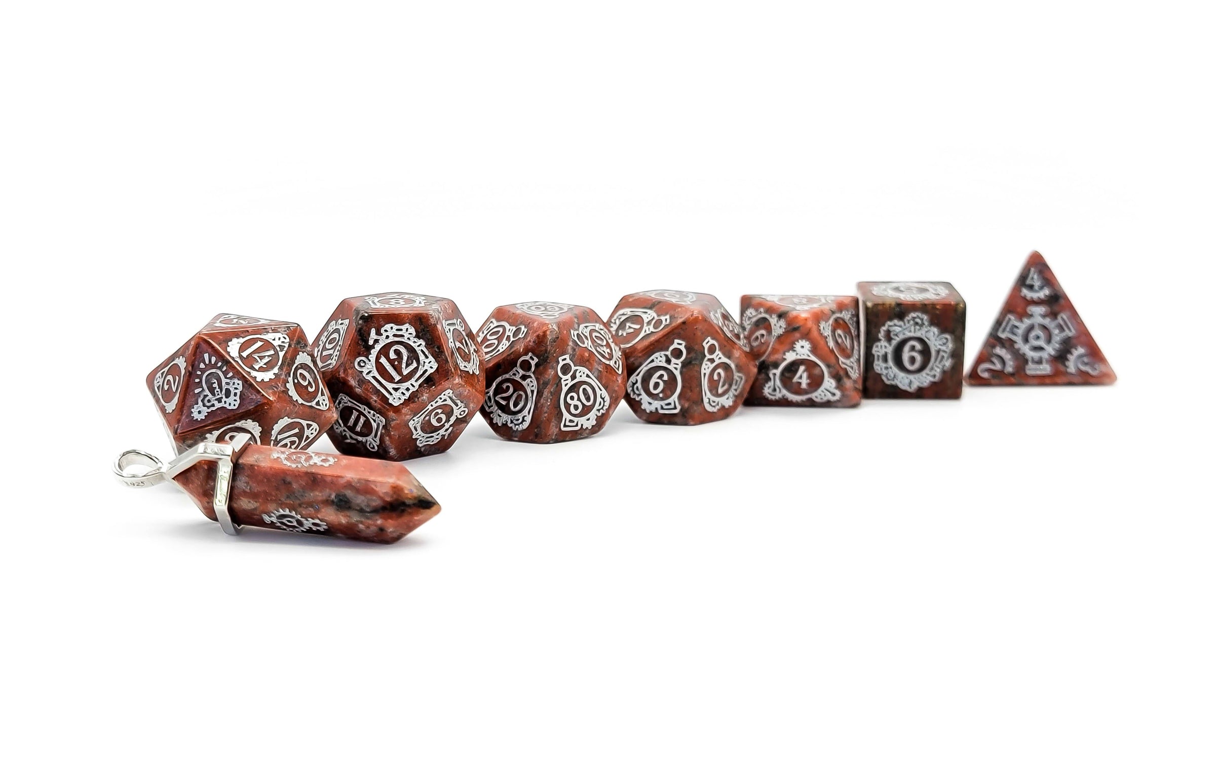 Natural Stone Disclaimer: Please note when ordering a set of our Semi-Precious Dice, they are created from natural materials, and there will be differences between every die. Our Semi-Precious Dice are hand-crafted, so there may be minor variations such as slight size differences, asymmetrical faces, or off-centre numbering. As such, each die is unique and may not be perfectly symmetrical; their roll is as balanced as one would expect from acrylic dice.