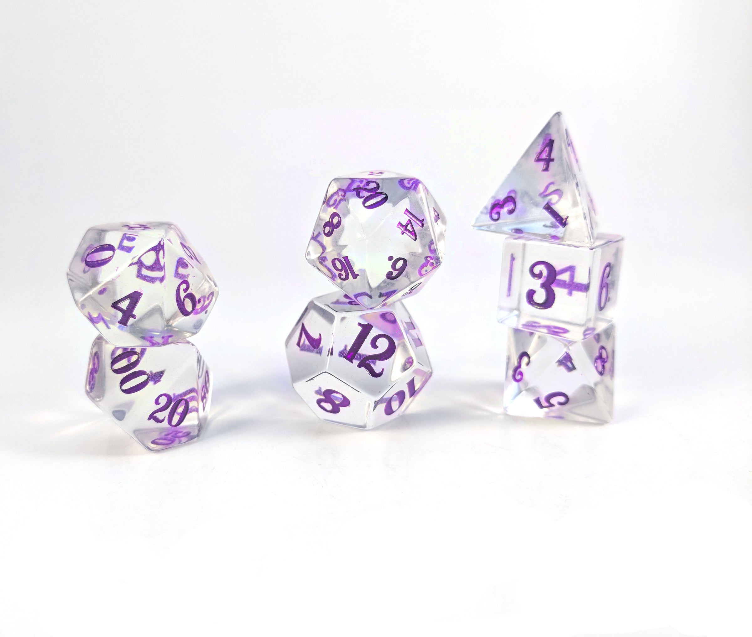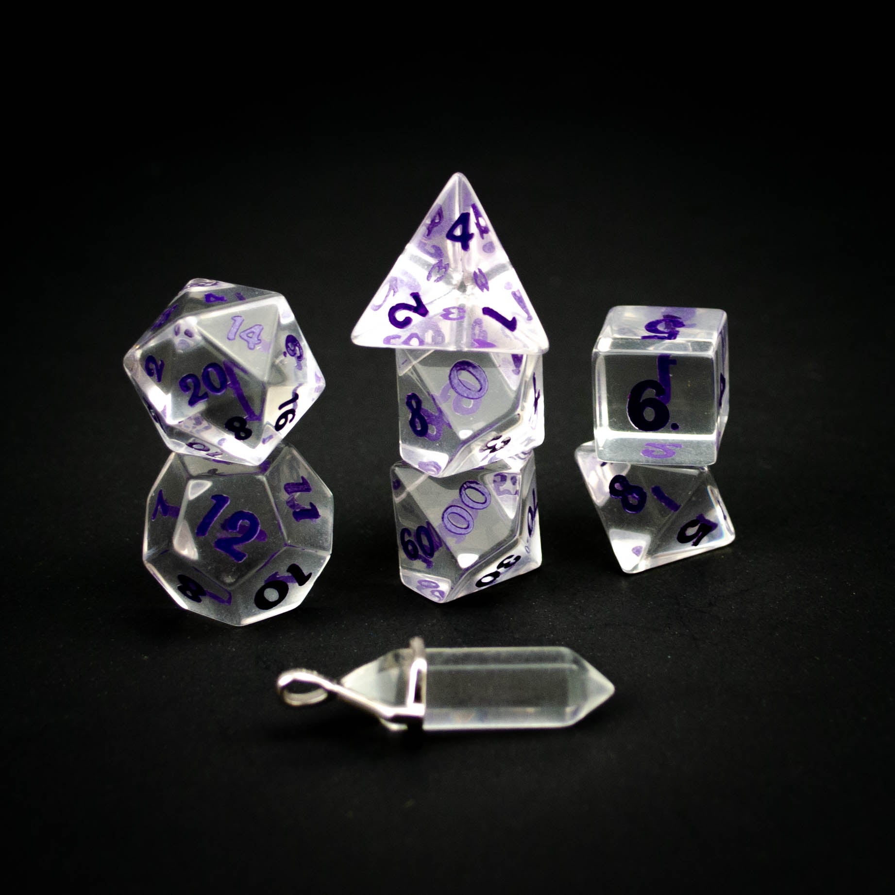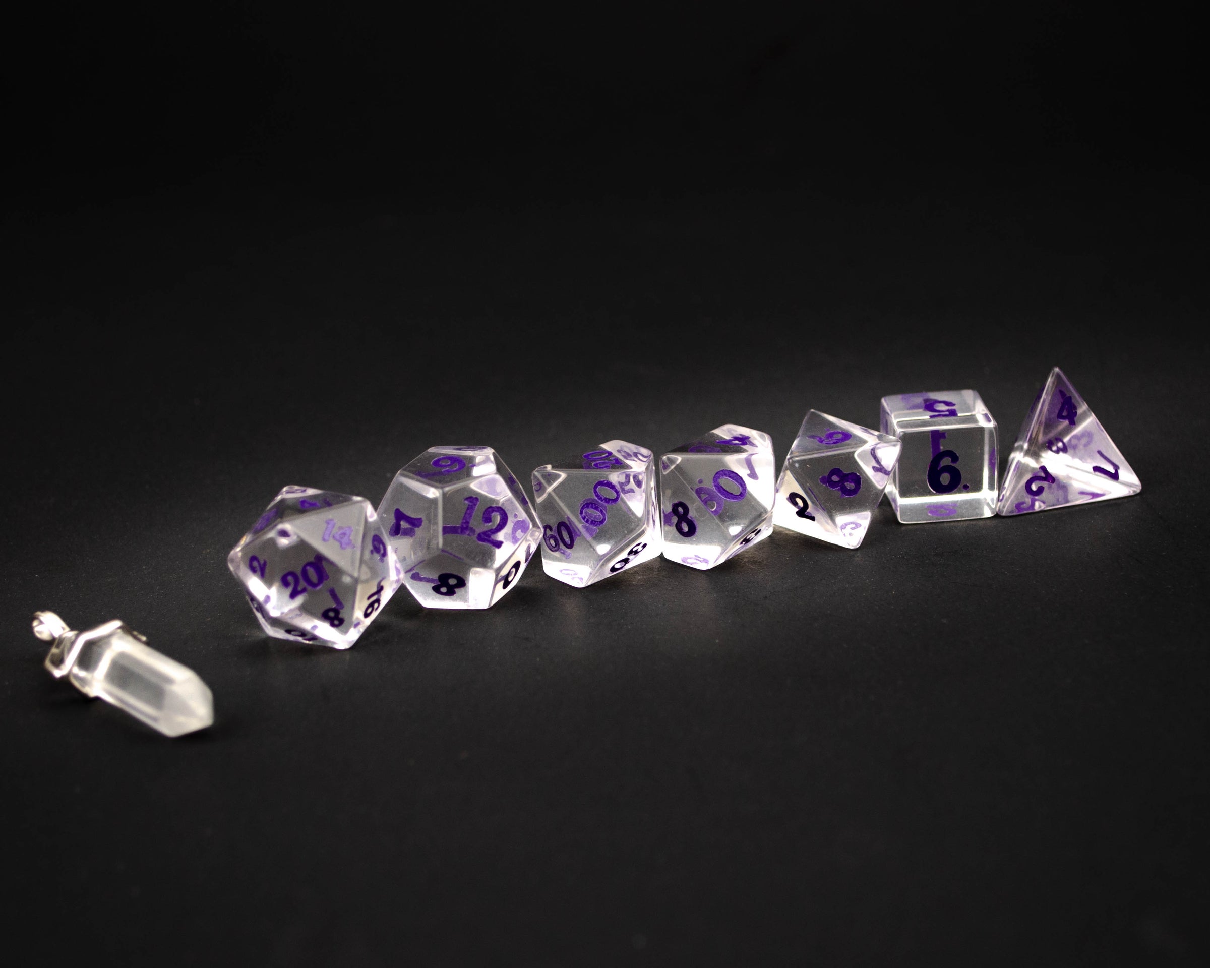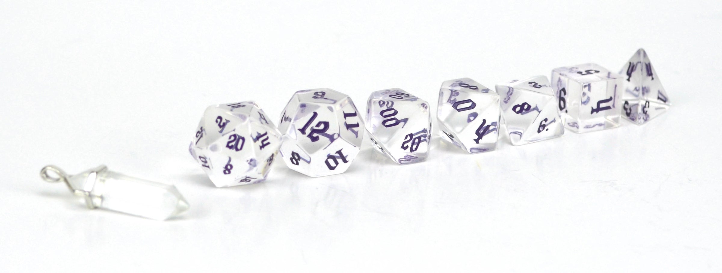 Welcome to the next level in material, we would like to introduce to you our Optically Clear Crown Crystal. After much searching to find the right medium for our glass range, as well as many hours of testing, we are proud to present the worlds first optically clear crystal set of dice. The same material used in many lasers and optics, it sports an index of refraction of 1.5, this is a clearer medium than glass or Zircon and also sports a higher durability.