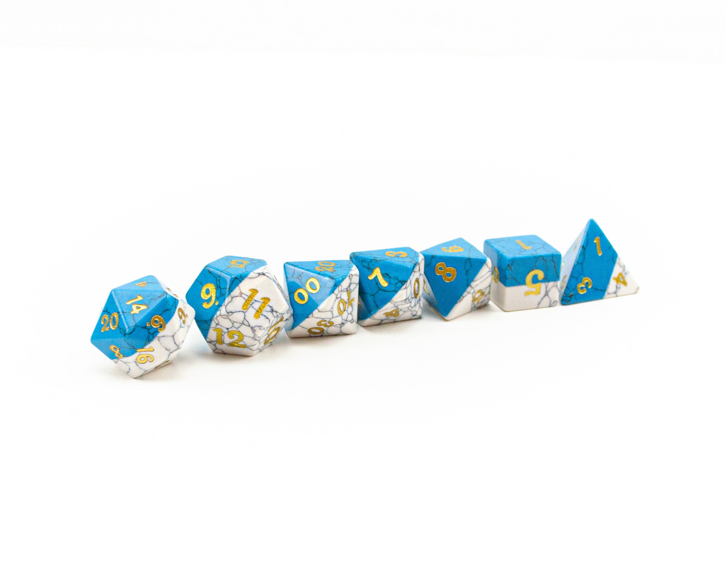 Natural Stone Disclaimer: Please note when ordering a set of our Semi-Precious Dice, they are created from natural materials, and there will be differences between every die. Our Semi-Precious Dice are hand-crafted, so there may be minor variations such as slight size differences, asymmetrical faces, or off-centre numbering. As such, each die is unique and may not be perfectly symmetrical; their roll is as balanced as one would expect from acrylic dice.